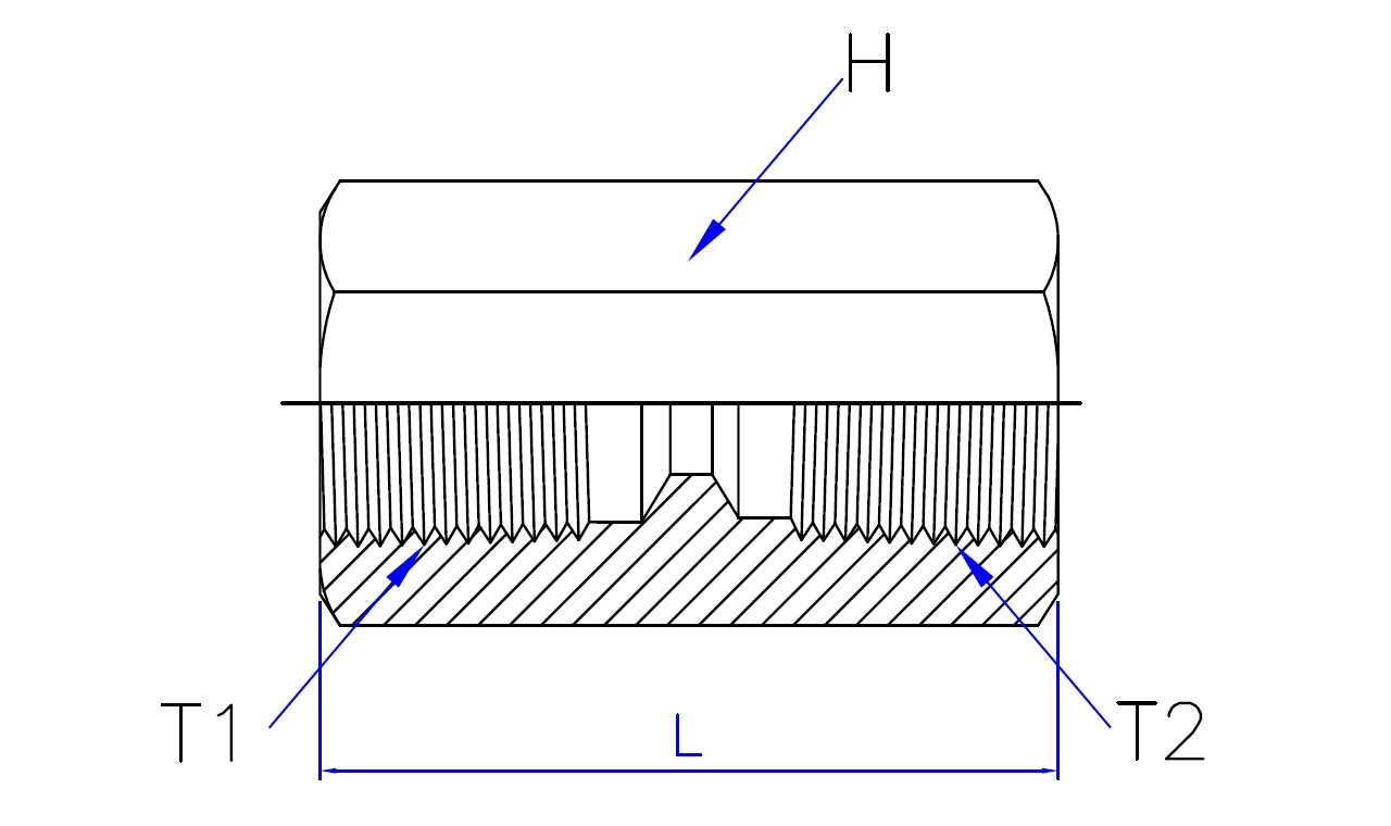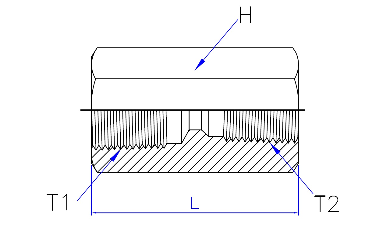 | Part No. | T1 - BSPT Female | T2 - BSPT Female | L (Length) | HEX (Width) |