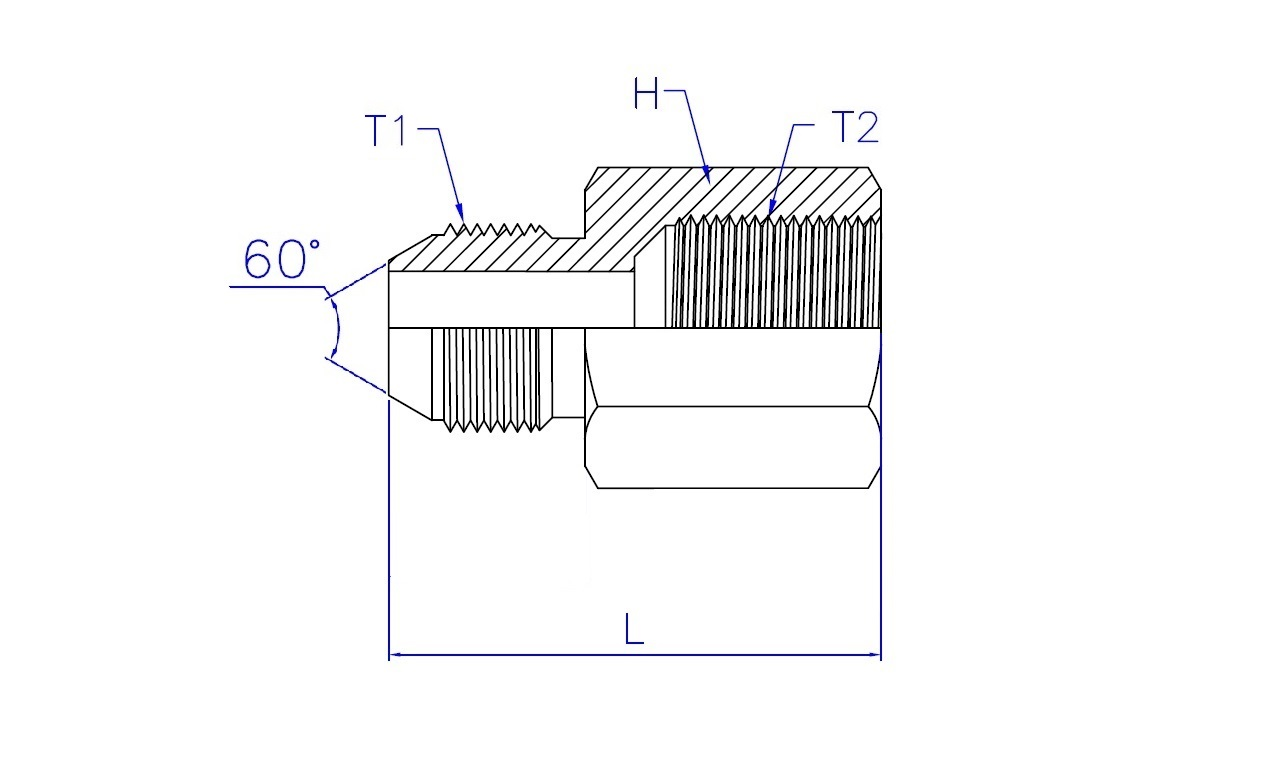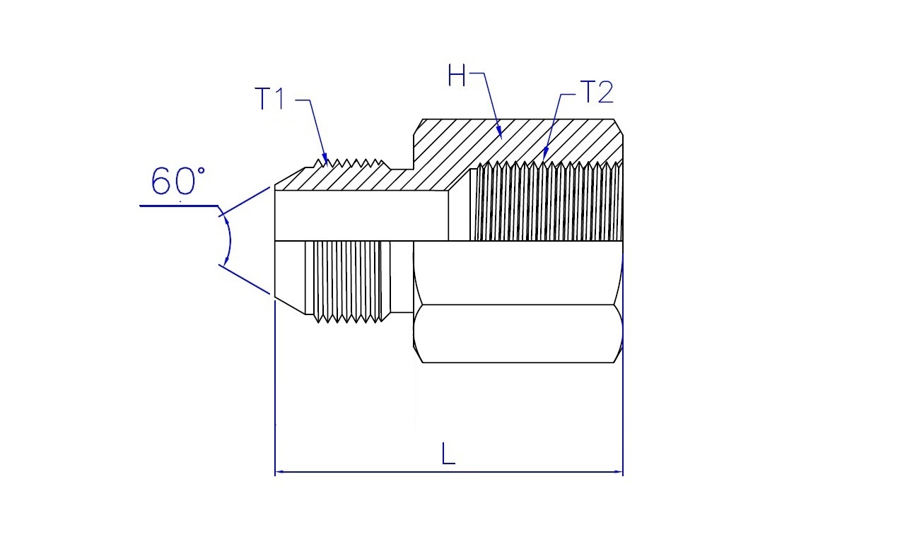 | Part No. | T1 - JIS 30° Male | T2 - BSPP Female | L (Length) | HEX (Width) |