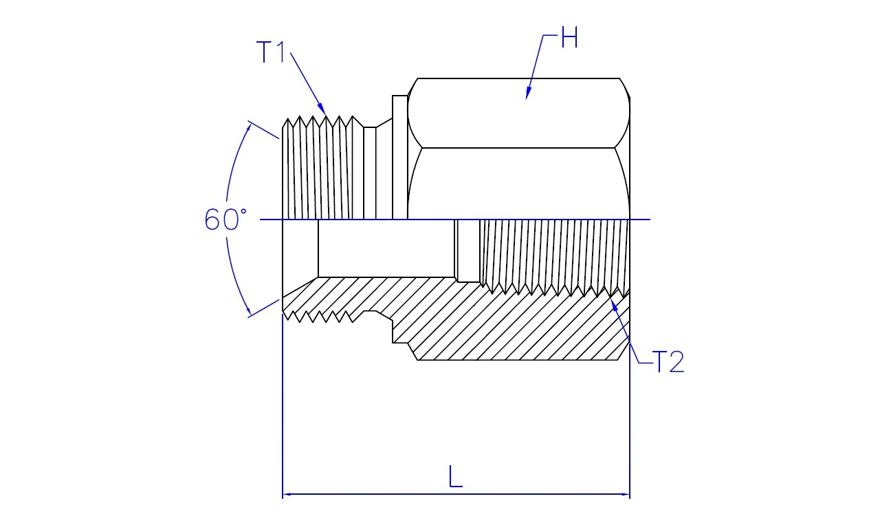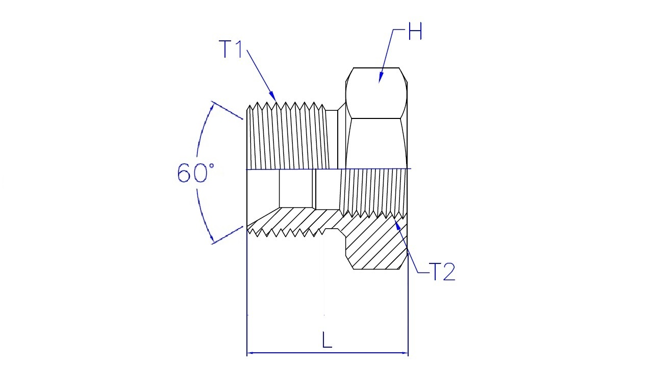 | Part No. | T1 - BSPP Male | T2 - NPT Female | L (Length) | HEX (Width) |