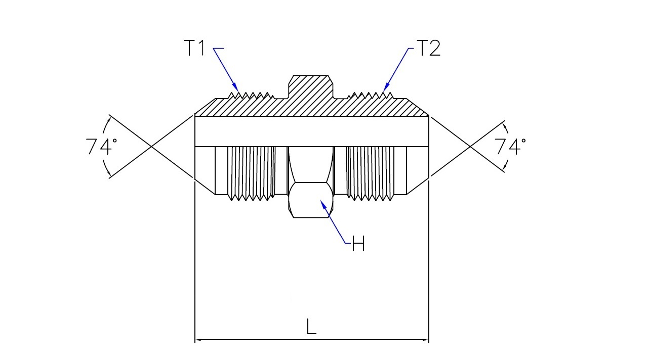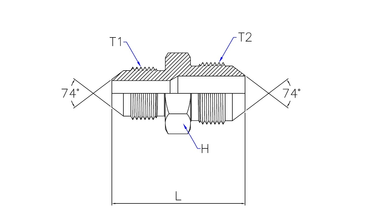 | Part No. | T1 - JIC 37° Male | T2 - JIC 37° Male | L (Length) | HEX (Width) |