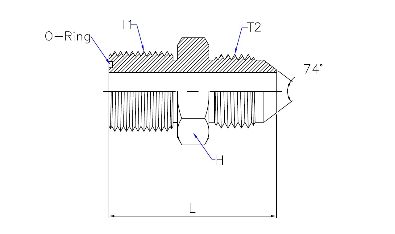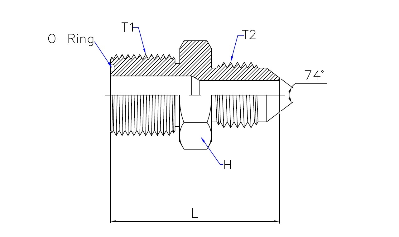 | Part No. | T1 - ORFS Male | T2 - JIC 37° Male | L (Length) | HEX (Width) |