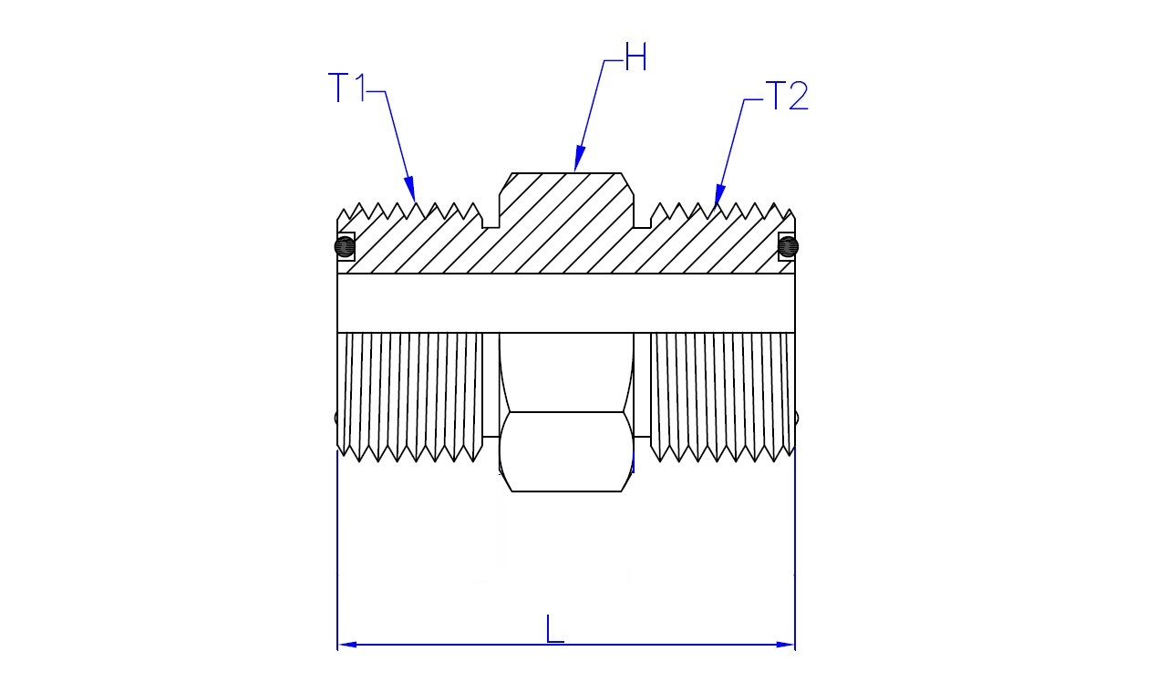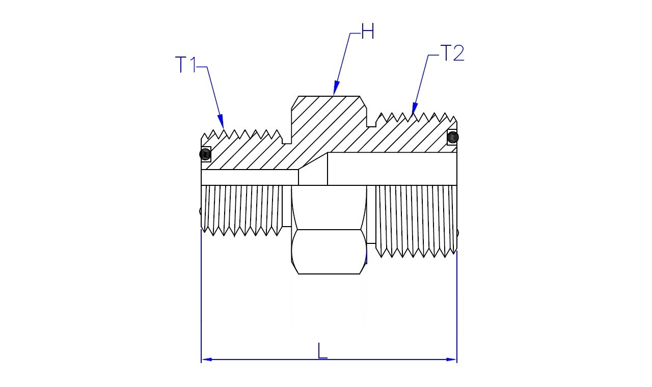 | Part No. | T1 - ORFS Male | T2 - ORFS Male | L (Length) | HEX (Width) |