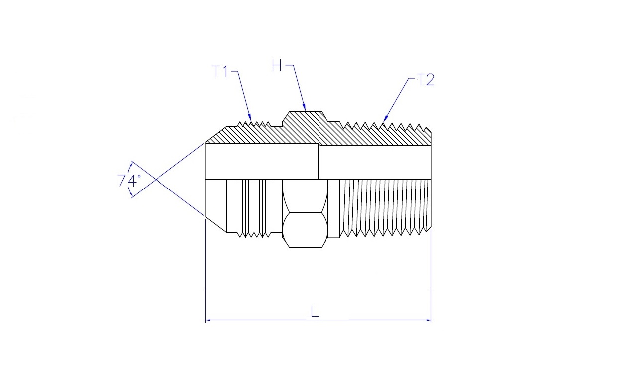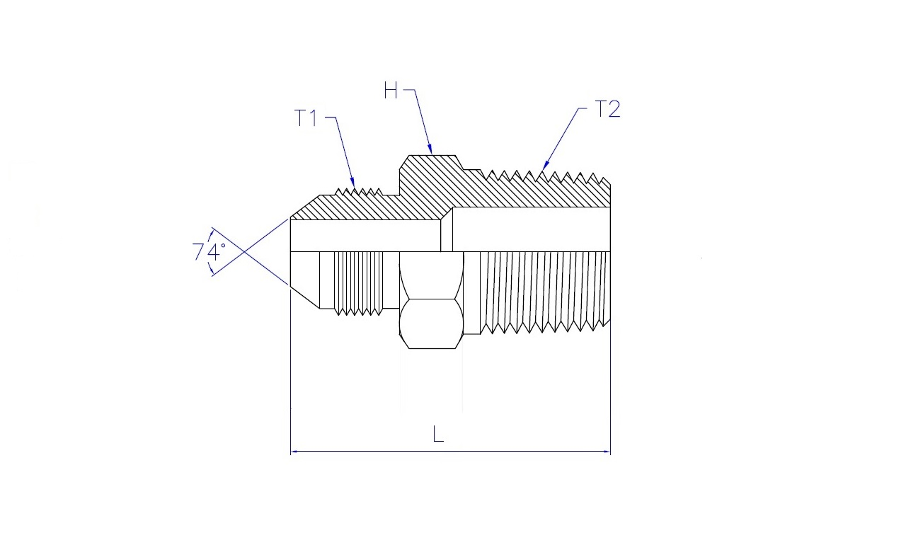 | Part No. | T1 - JIC 37° Male | T2 - BSPT Male | L (Length) | HEX (Width) |