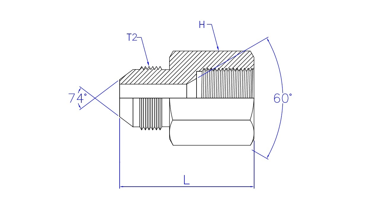 | Part No. | T1 - JIC 37° Male | T2 - JIS 30° Female | L (Length) | HEX (Width) |