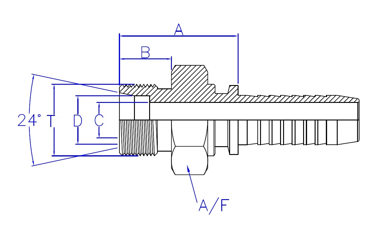 | 24HBARB2206 | M22 X 1.5 | 14mm | -6 | 3/8 | 24.0 | 28.0 | 14.0 | 7.0 |